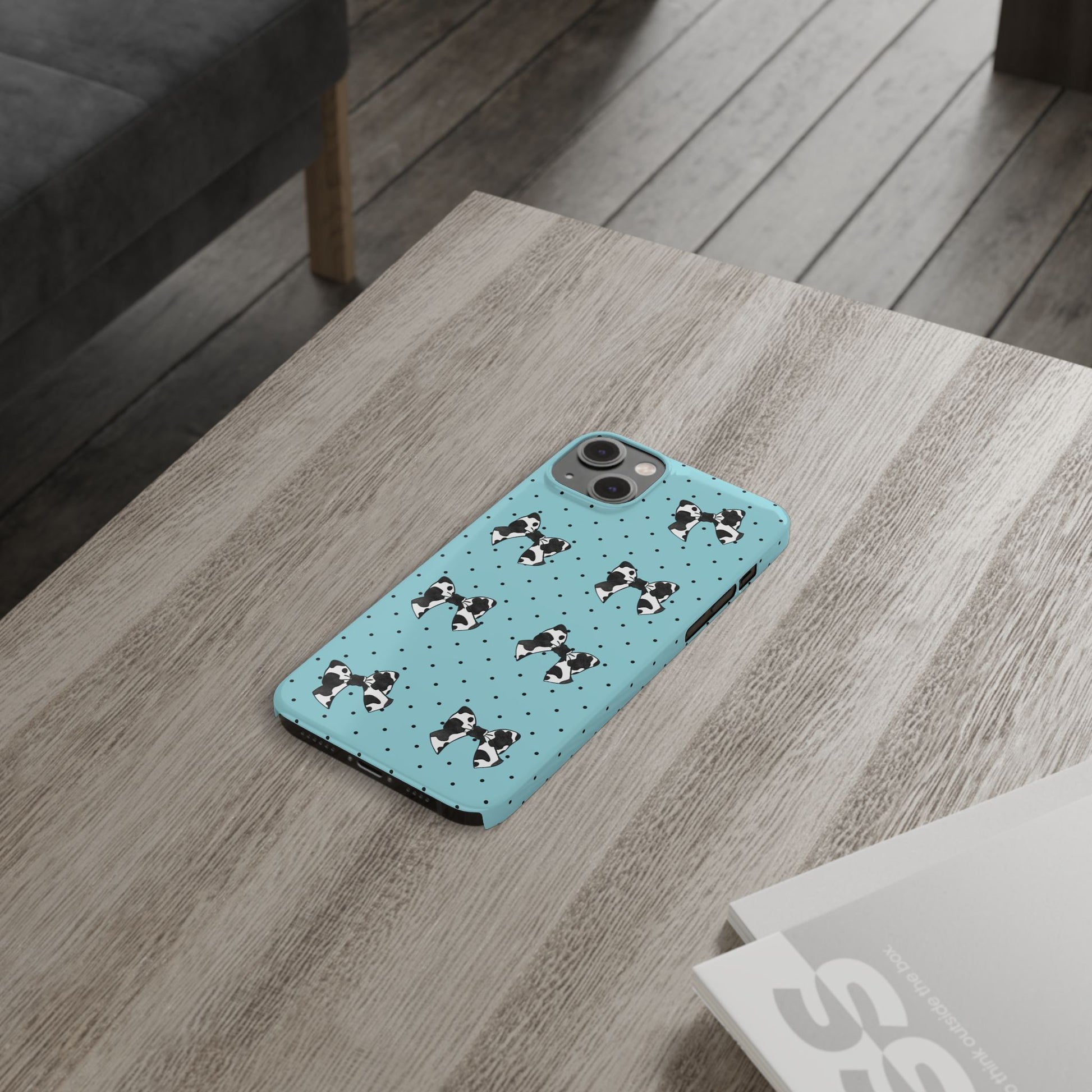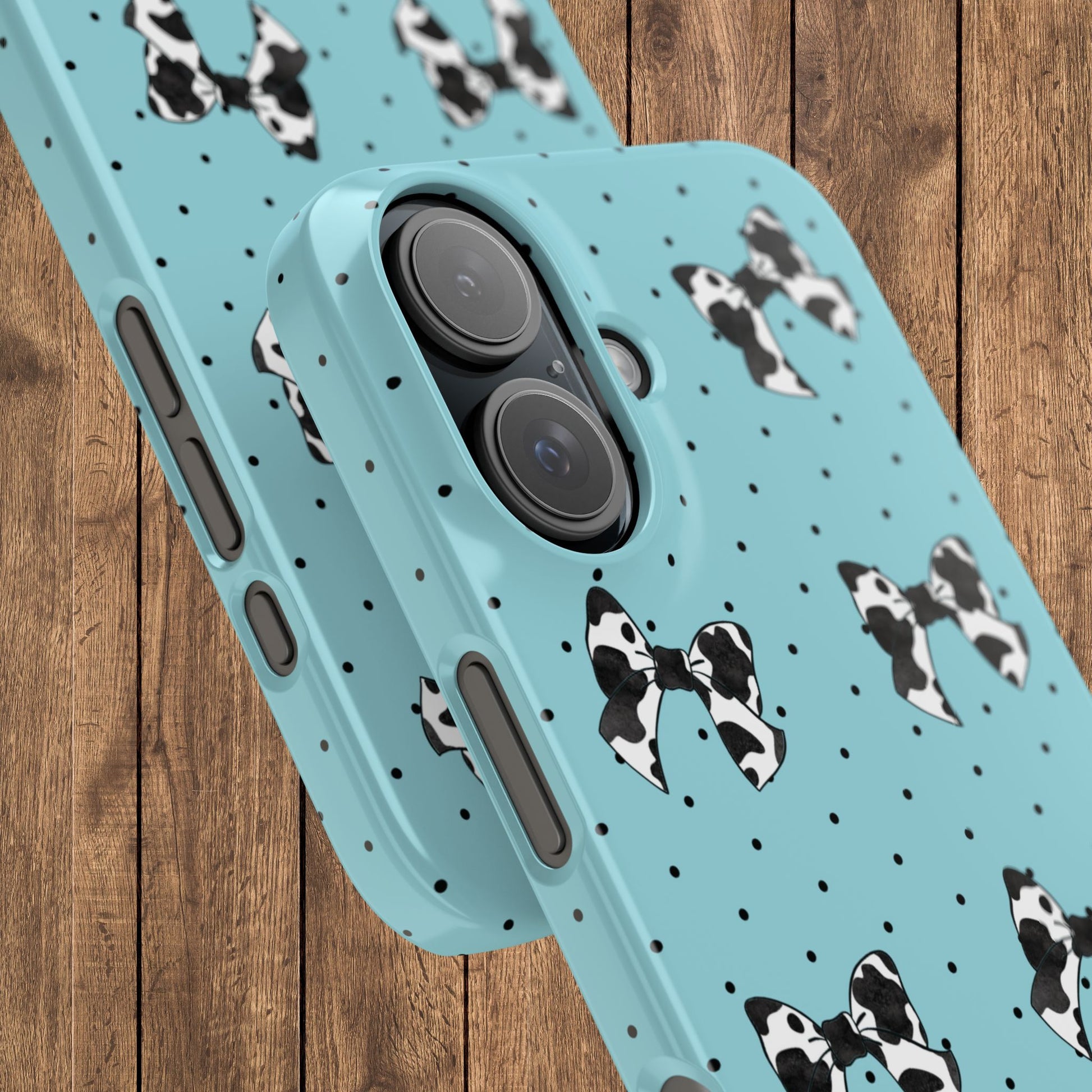 This Cow Print Coquette Bow & Polka Dot Teal Slim iPhone Case gives off a fun and playful vibe perfect for those who love quirky designs. It provides excellent protection for your phone while remaining slim and stylish. Ideal for individuals looking to add some personality to their phone accessories or as a unique gift for a friend. Relevant for birthdays, Christmas, or any special occasion.