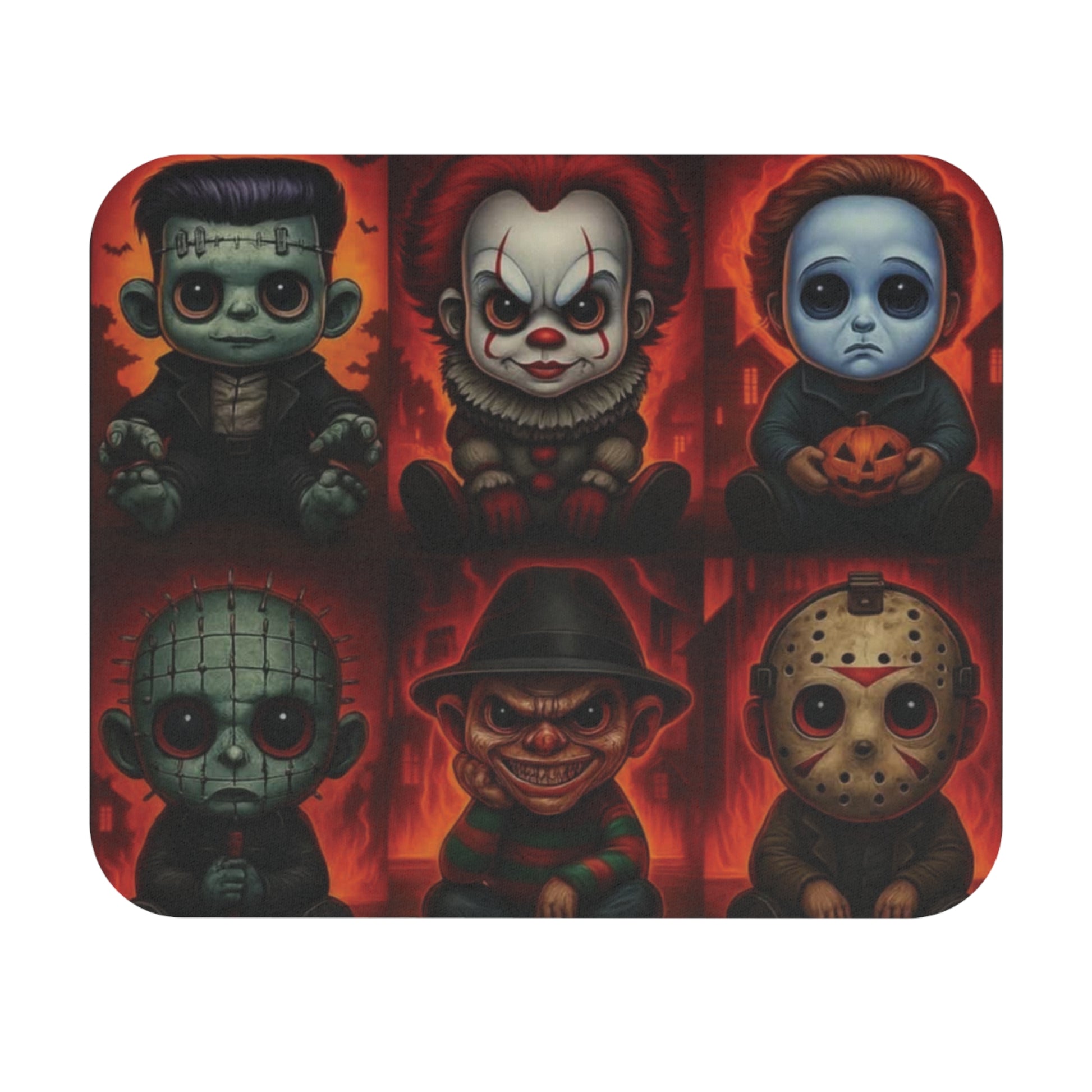 This Cute Horror Movie Villains Mouse Pad is perfect for horror movie fans who want to add a bit of creepiness to their workspace. With bright and intense colors, smooth surface for easy mouse gliding, and a durable material, this mouse pad is ideal for everyday use. Perfect for Halloween enthusiasts and horror movie lovers.