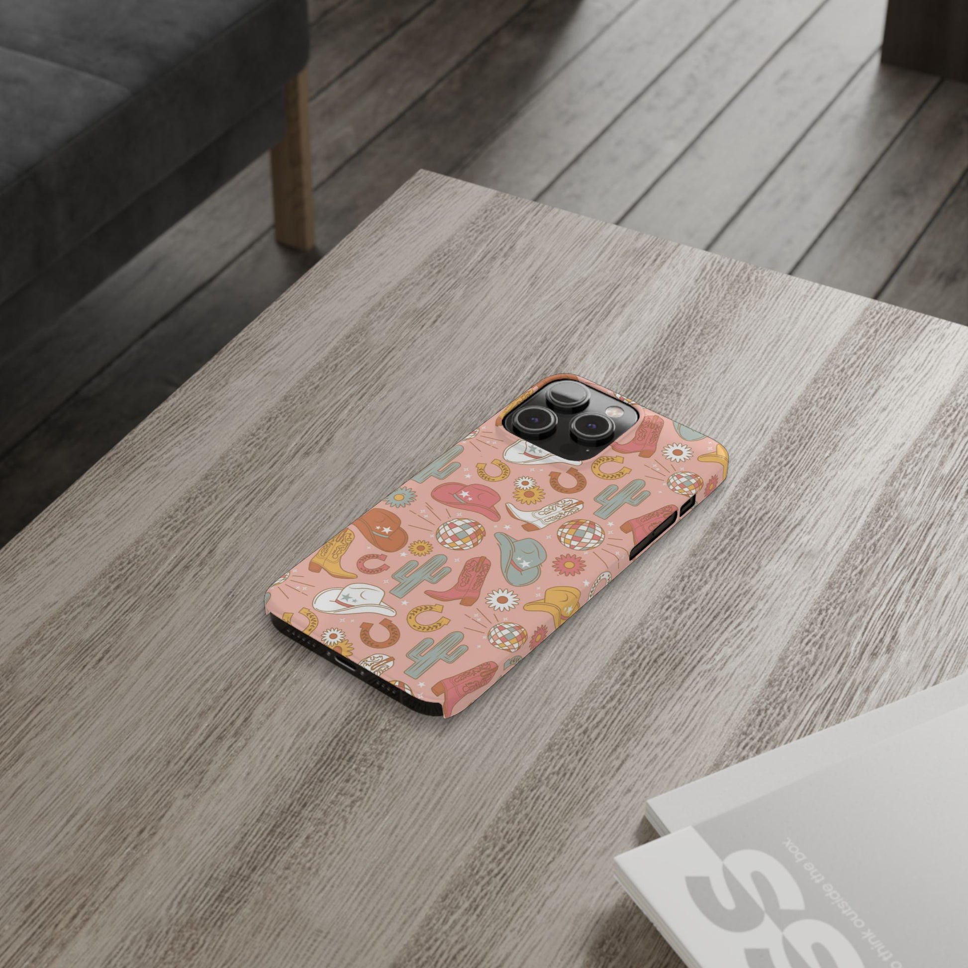 This Disco Cowgirl Pink Slim iPhone Case exudes a fun and vibrant vibe, perfect for those who love quirky and unique designs. It offers excellent protection while maintaining a sleek and stylish look. Ideal for anyone looking to add a pop of color to their phone accessory collection. Perfect for gifting on birthdays, holidays, or any occasion.