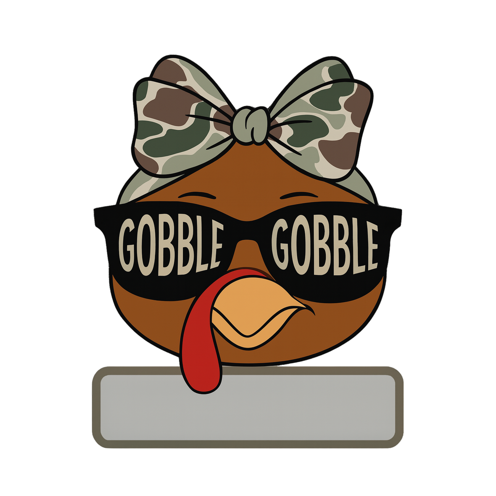 Gobble Gobble Girls Youth Camoflauge Turkey Thanksgiving Personalized Name PNG File - Digital Download PNG File - Digital Download