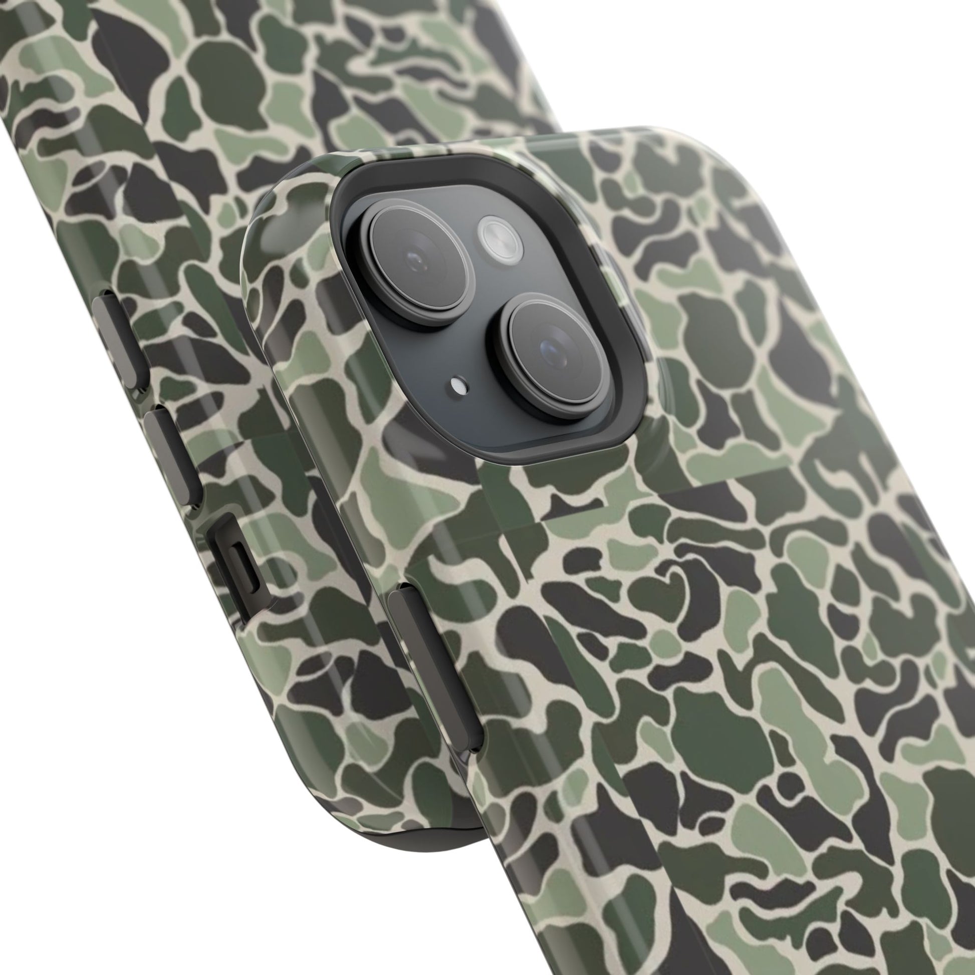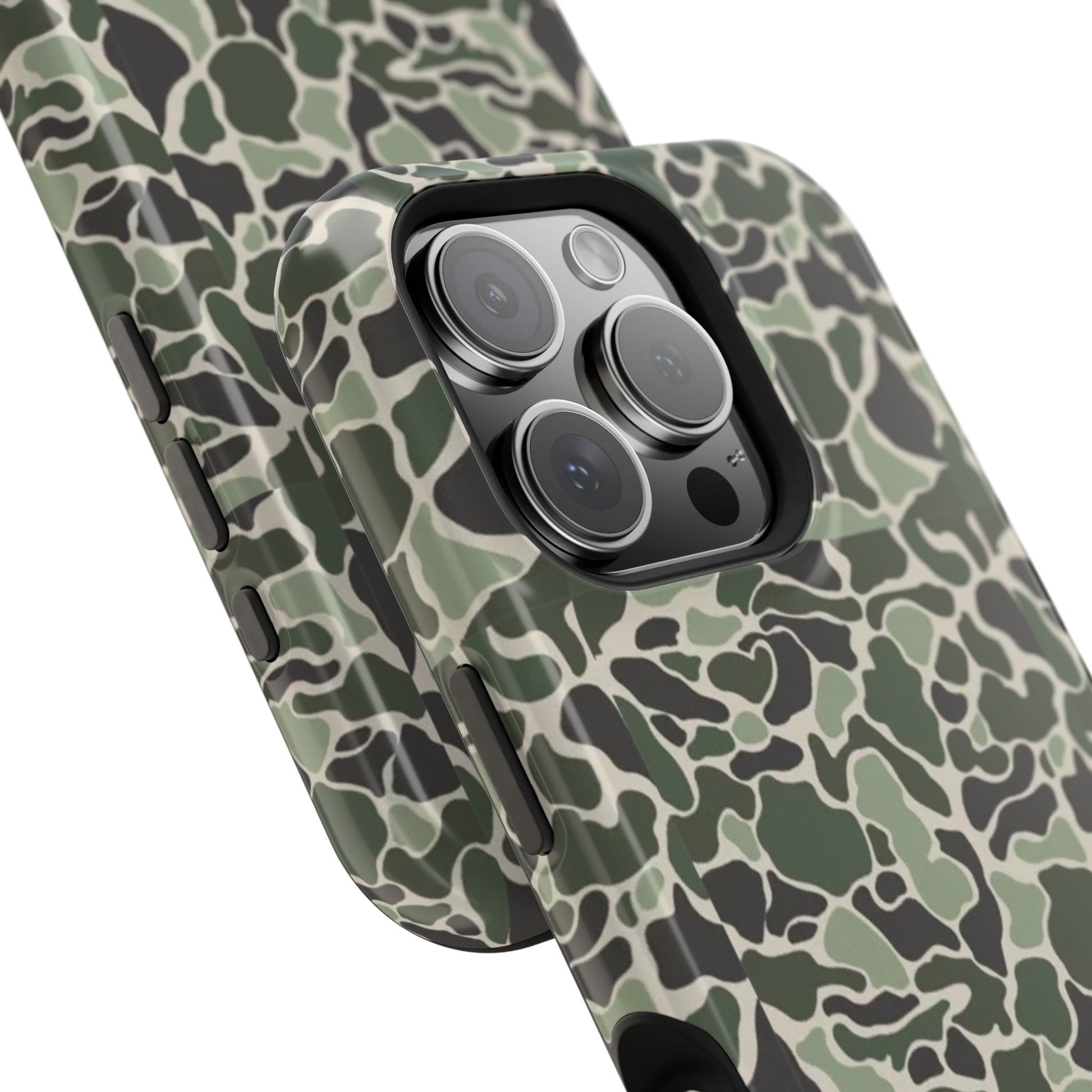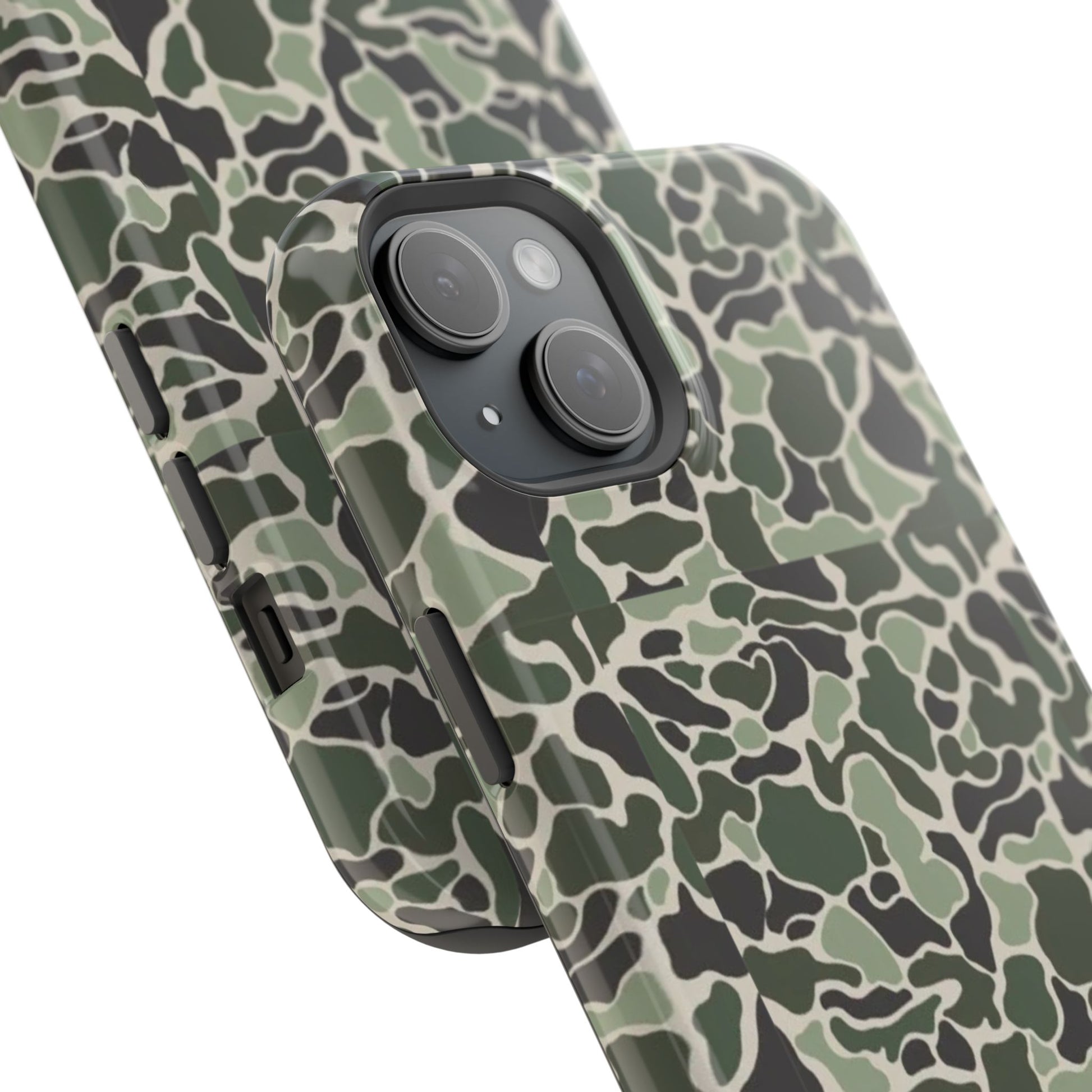 This Green Old School Camo Tough Magnetic Phone Case gives off a rugged and adventurous vibe, perfect for outdoor enthusiasts or military enthusiasts. It provides durable protection for your iPhone while offering a vibrant camo design. Ideal for those who appreciate both style and functionality.