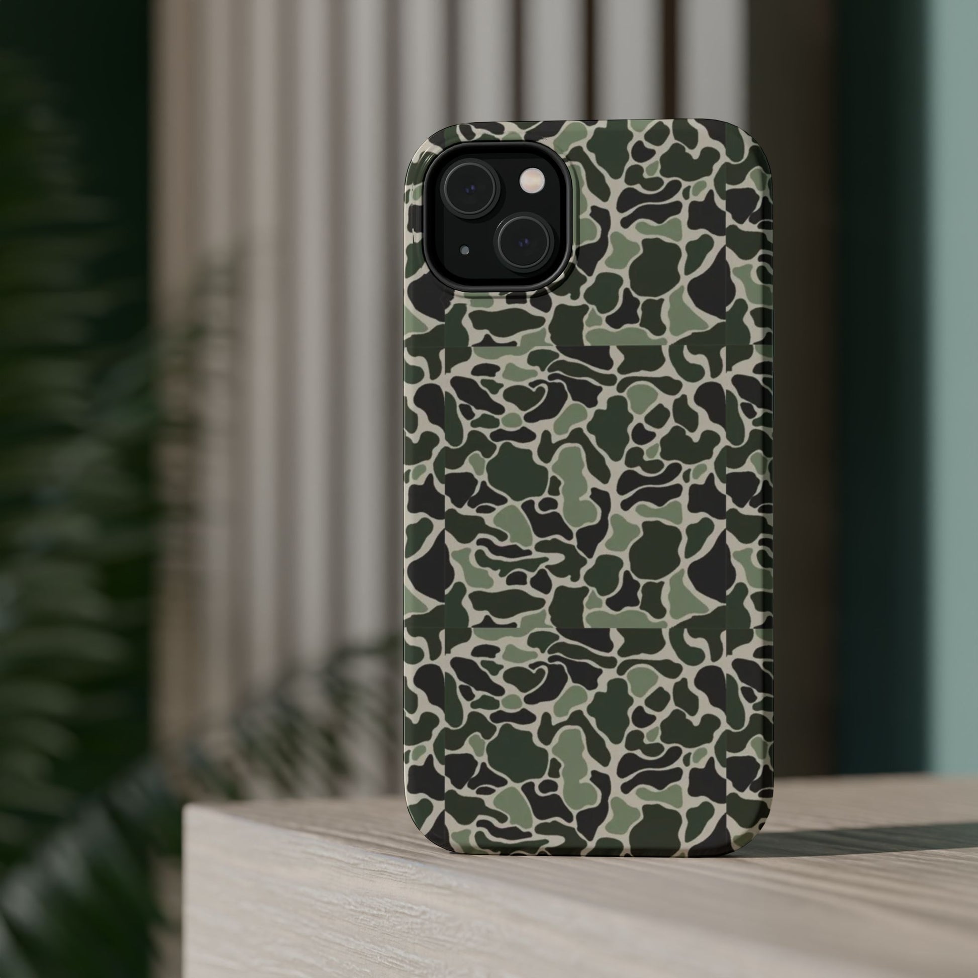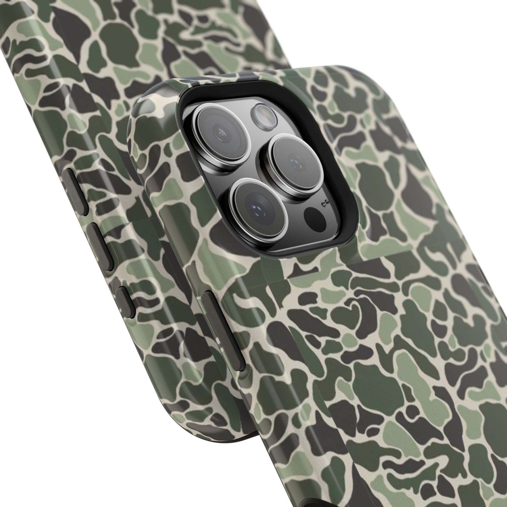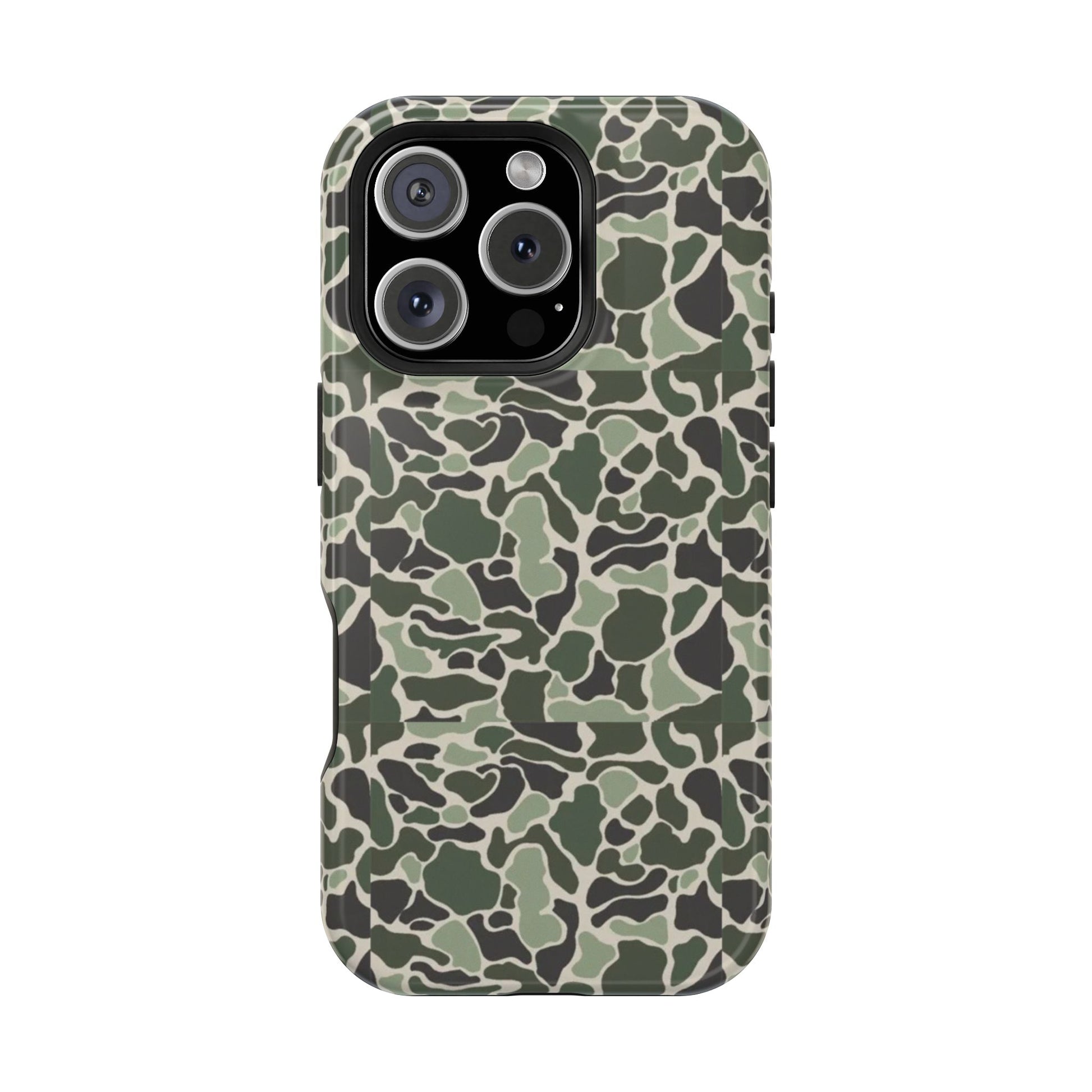 This Green Old School Camo Tough Magnetic Phone Case gives off a rugged and adventurous vibe, perfect for outdoor enthusiasts or military enthusiasts. It provides durable protection for your iPhone while offering a vibrant camo design. Ideal for those who appreciate both style and functionality.