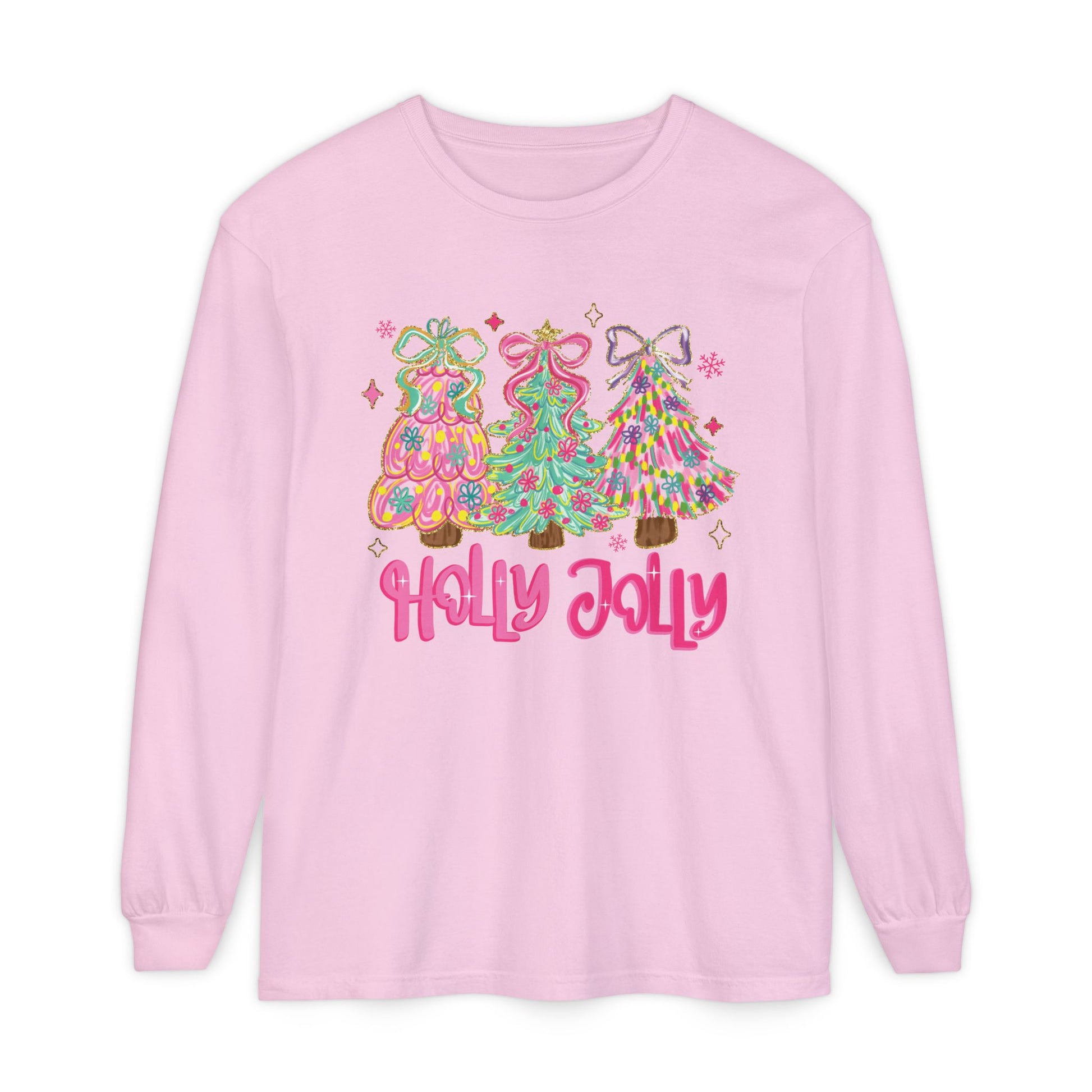 Get into the holiday spirit with this holly jolly sparkle festive long sleeve graphic t-shirt. Perfect for spreading cheer during Christmas celebrations, this t-shirt is made from garment-dyed fabric for a soft feel and features ribbed-knit cuffs for a comfortable fit. Ideal for adults looking to add some festive fun to their wardrobe.