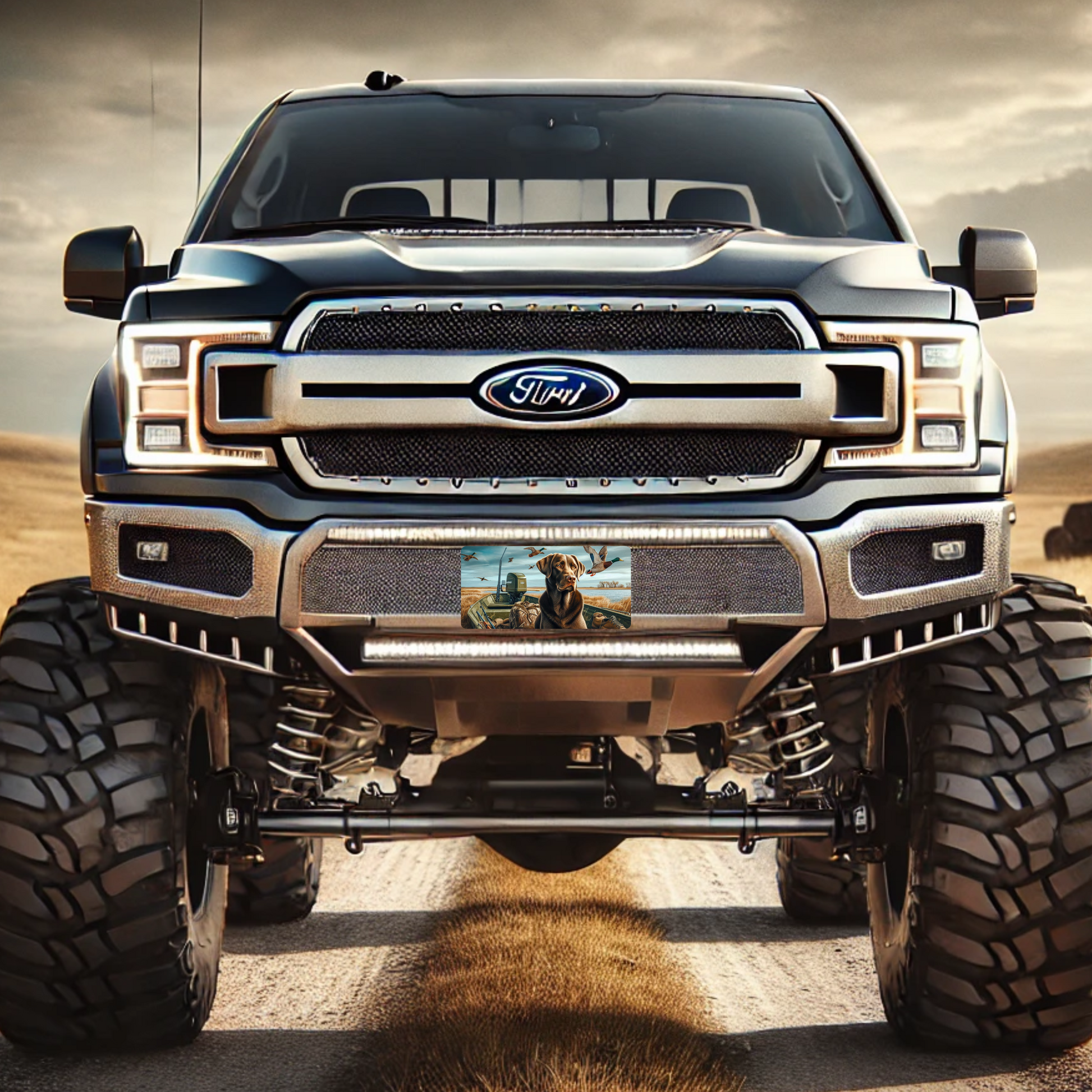 Show off your love for duck hunting and the great outdoors with this decorative front vehicle license plate. Featuring a lifelike design of a loyal chocolate Labrador Retriever sitting attentively in a hunting boat surrounded by flying mallards, this plate captures the spirit of waterfowl hunting. The high-quality print brings the vibrant details of the marshlands to life, making it the perfect accessory for any hunting enthusiast's truck or SUV. Durable and weather-resistant, it's designed to withstand the elements while adding a touch of personality to your ride. Perfect for hunters, dog lovers, and outdoor adventurers alike!