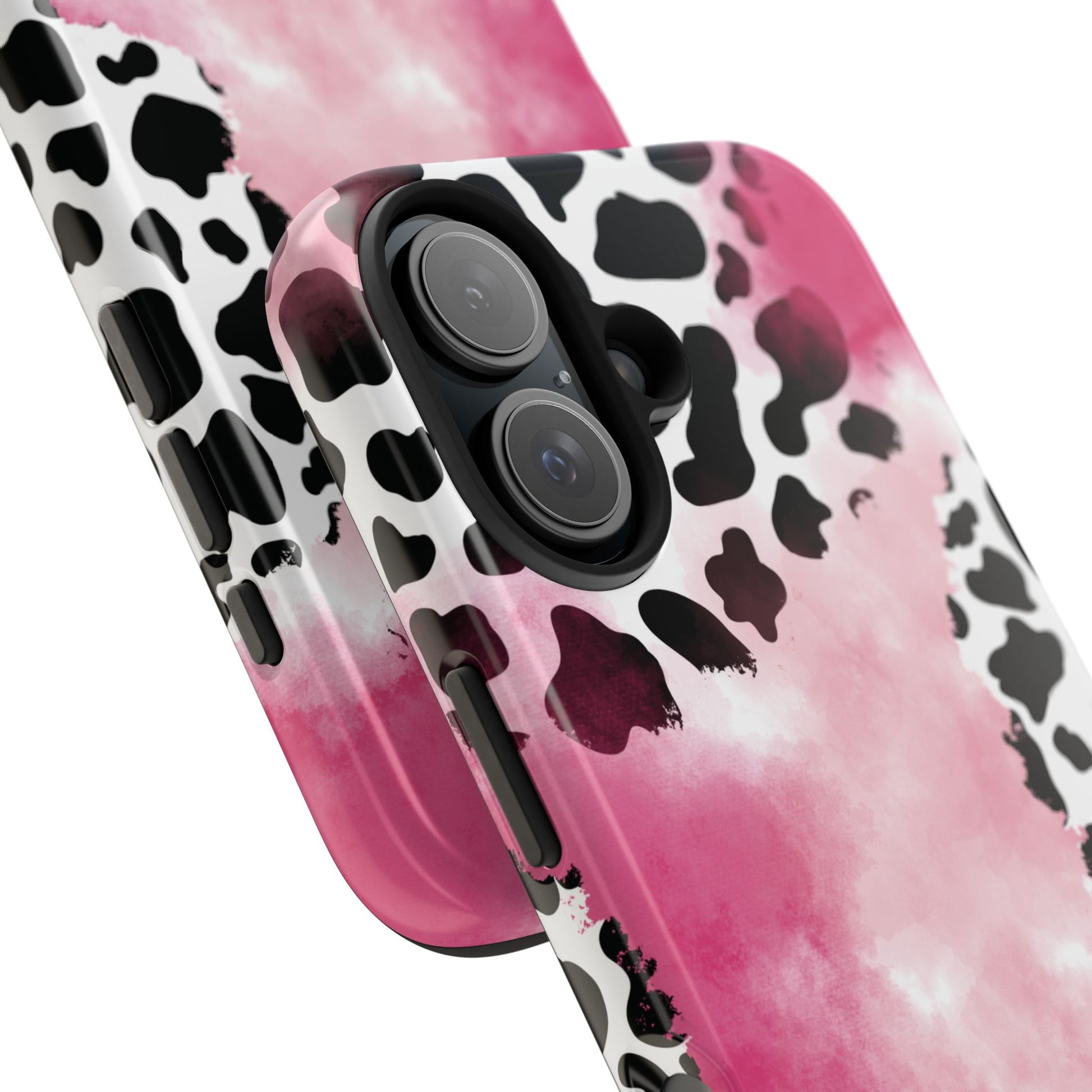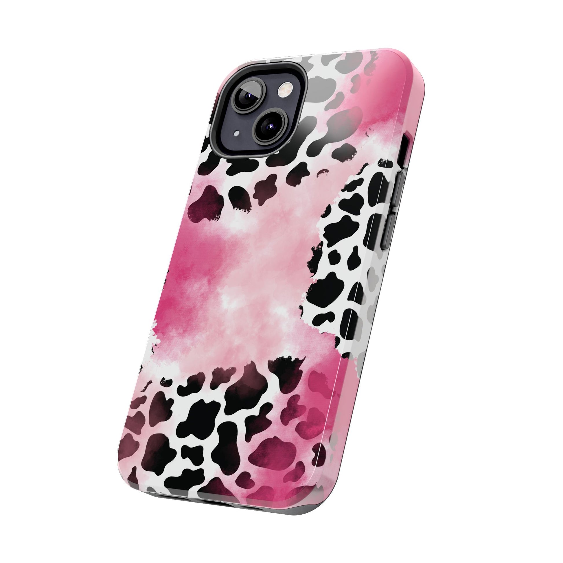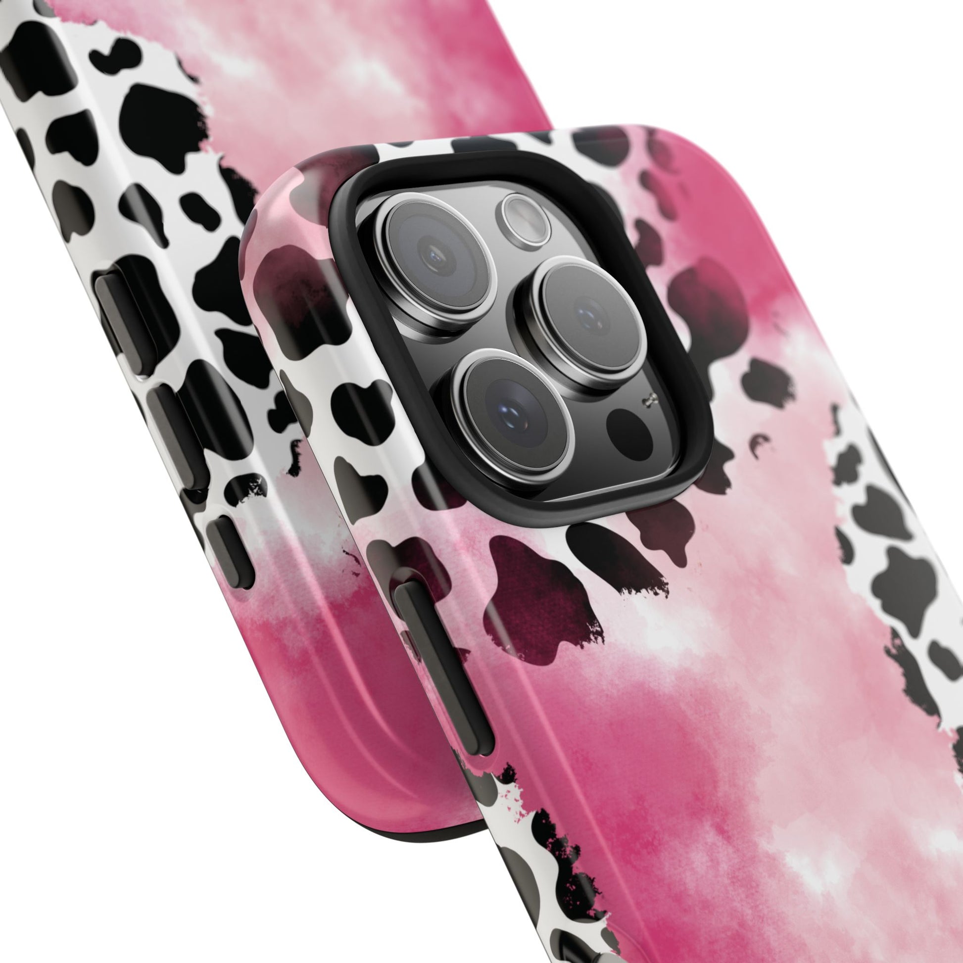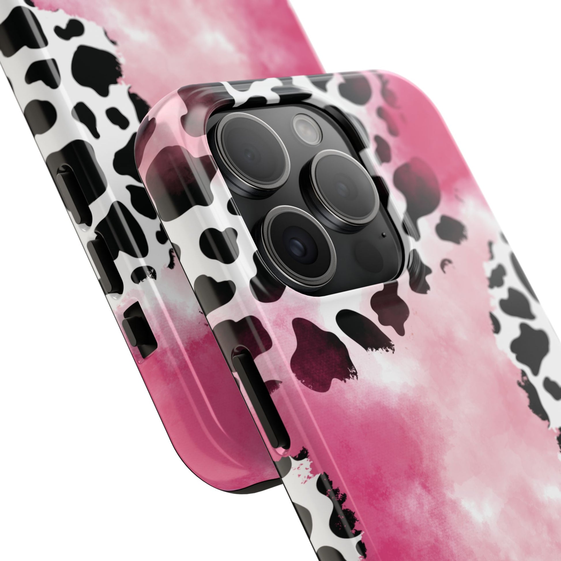 Pink Watercolor Cow Print Blend iPhone Tough Phone Case